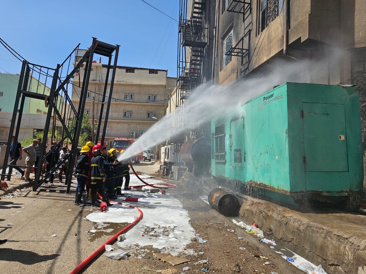 الدفاع المدني يخمد حريقاً في مولد للكهرباء تابع لمول تجاري وسط البصرة