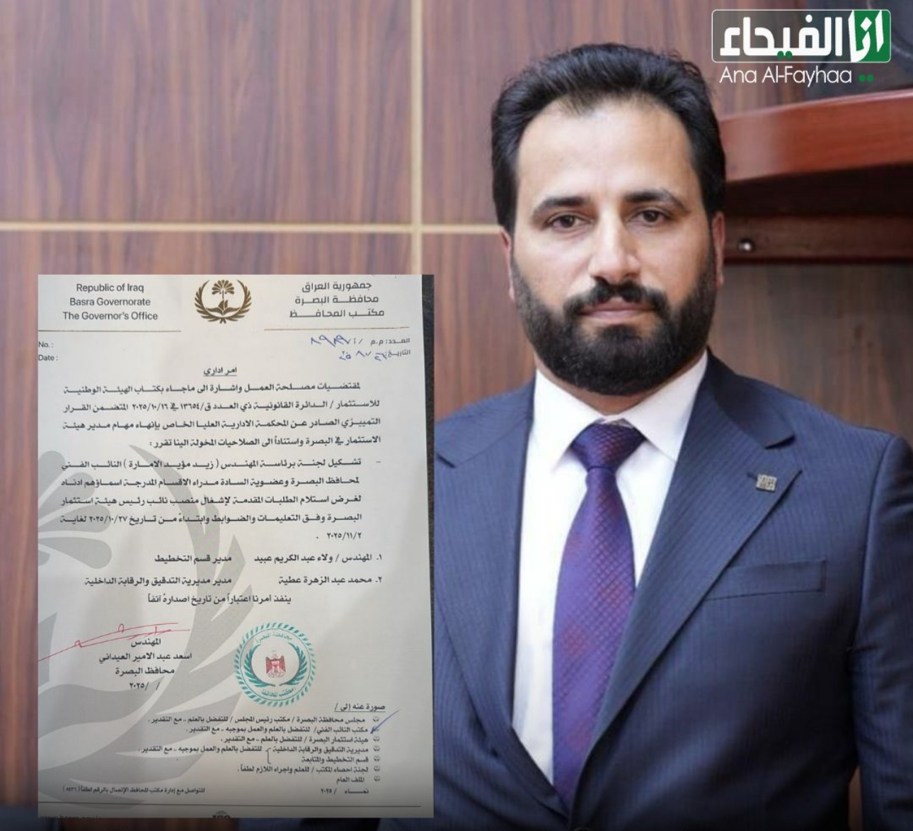 أصدر محافظ البصرة أسعد عبد الأمير العيداني أمرًا إداريًا يقضي بتشكيل لجنة برئاسة زيد مؤيد الإمارة النائب الفني للمحافظ، وعضوية ولاء عبد الكريم عبيد مدير قسم التخطيط، ومحمد عبد الزهرة عطية مدير مديرية التدقيق والرقابة الداخلية.