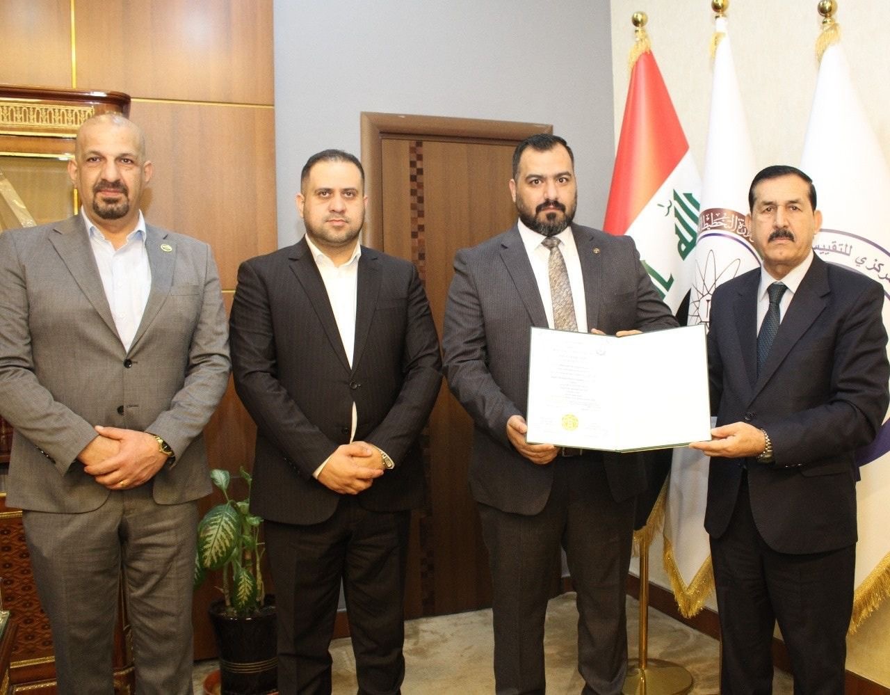 منح الجهاز المركزي للتقييس والسيطرة النوعية، اليوم الخميس الموافق 11 كانون الأول 2025، علامة الجودة العراقية لمنتجين كهربائيين مستوردين من شركتي NINGBO و MIDEA الصينيتين، وذلك خلال مراسم رسمية جرت في مقر الجهاز ببغداد، بحضور رئيس الجهاز الأستاذ الدكتور المهندس فياض محمد عبد، والمدير العام لدائرة السيطرة النوعية المهندس مشتاق معين محمد، ومدير قسم منح الشهادات السيد مصطفى ناظر عبد المنعم.