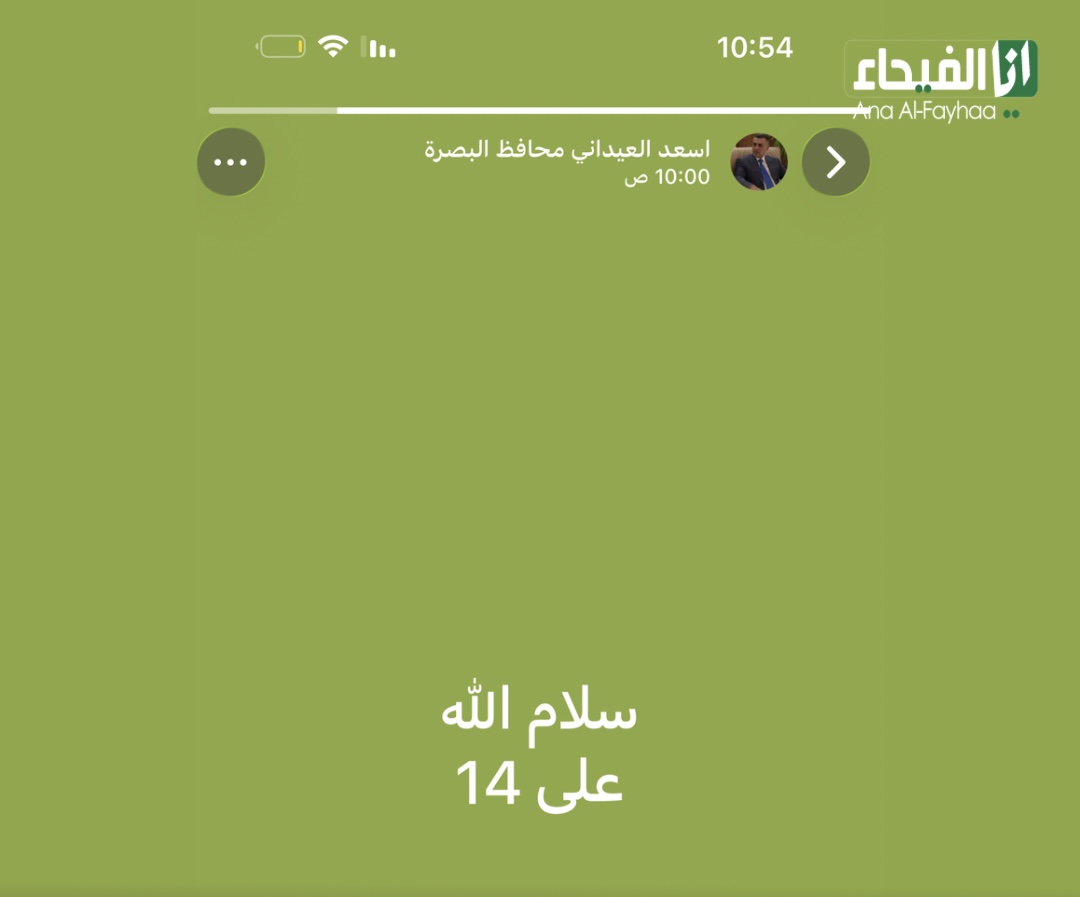 عبر “حالة” واتساب محافظ البصرة اسعد العيداني يقول “سلام الله على الـ 14”